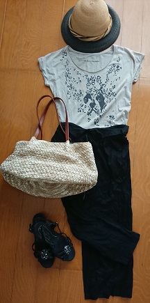 JUGEMテーマ:*今日のコーデ* Yukkoです。こんにちは。 これから福岡です。 蒸し暑いですね。 ストールは冷房対策です。 Tシャツ:セオリーリュクス パンツ:suria サンダル:VITA NOVA リュック:RICARD ストール:?(インポート)