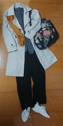JUGEMテーマ:*今日のコーデ* 今日は週末なので 単身赴任中の大分県から 福岡県の自宅に戻ります。 乗り物(高速バス)に長時間乗るので 動きやすい装いで。 トレンチコート:ウィークエンドマックスマーラー ニット:ヴィンス パンツ:イクコ スニーカー:ヨシエイナバ バッグ:スザンナハンター ストール:クロエ スニーカーは新品 布製(ニット)なので軽くて柔らかくて履きやすい!
