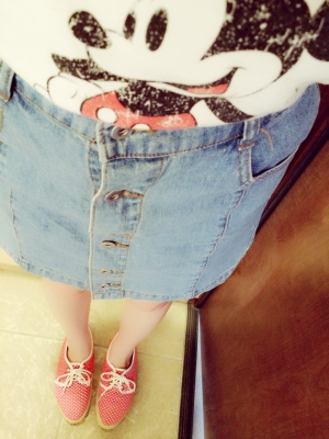 今日のお洋服。 これから一週間ごとに、お洋服を載せていこうかな。 できるだけ、タンスの中に眠ってるお洋服たちを組み合わせてね (。・ω・。) 月曜日のお洋服 ・ミッキーT ・デニムのタイトスカート ・水玉、赤色の靴 赤の水玉の靴は、2、3年前に買ったもの その時は、どう組み合わせたらいいのか分からなくて履かなかったんだけど 今はお靴が流行ってるから組み合わせやすいね (^O^) JUGEMテーマ:*今日のコーデ*