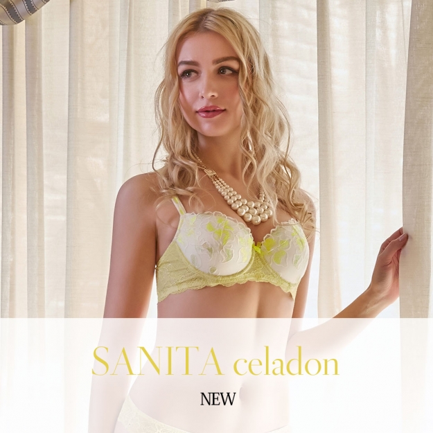 エヴァビアンより新作発売のお知らせです。 ホワイトレースに瑞々しいレモンイエローで刺繍をほどこした「SANITA celadon」コレクション。 大人の女性を彩る華やかなランジェリーは特別な旅行などにも連れて行きたいデザイン♪ ブラ4タイプ、ショーツ4タイプの全8アイテム。 ヨーロッパらしい非日常的でエレガントなアイテムをぜひご堪能下さい。 全てのアイテムを「お取り寄せ」で購入可能「1週間程度」でのお届けです。 [SANITA celadon] 一覧 JUGEMテーマ:キュートなラ...