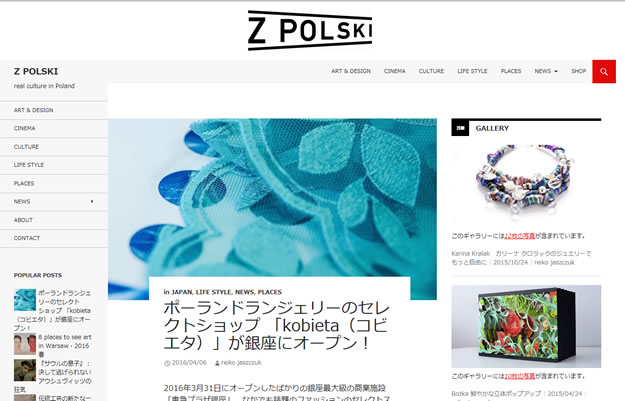 ポーランドのアート・カルチャー・旅を発信するウェブマガジン「Z POLSKI」(ズ ポルスキ)にて、 今年3月31日にオープンした東急プラザ銀座 3F HINKA RINKA 1st に開店した ポーランドランジェリーのセレクトショップ「 kobieta-コビエタ- 」が紹介されました。 Sawren(サブレン)やAxami(アクサミ)などが本社を構える ポーランドランジェリーの聖地、ビャウィストクのことも紹介されています。 これを機会にポーランドのアートやカルチャーにも是非触れてみてください。 ▼メディア掲載紹介 http://www.splash-web.net/...