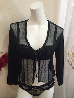 JUGEMテーマ:下着・ランジェリー こんにちは 本日は 当店スタッフがお揃いで着用している <シークレットプレジャー> の カーディガン をご紹介します ¥6600+tax カラー:ブラック、ベージュ 前身頃はブラックドットの やわらかいメッシュ素材 着ごろは コットンレーヨンを使用しているので 肌触りがとてもいいです バスト下の切り替えに沿った ベロアリボンがアクセント スタッフ着用の アリアンヌのワンピースにも 相性ばっちり もちろん お手持ちのお洋服、 ど...