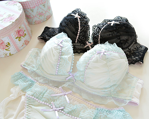 ラヴィアドゥの新作ケミカルレースが入荷しました。 ラグジュアリーで華やかなケミカルレース。 ビーズ付きリボンモチーフにピコストラップ、ディテールまでが繊細に。 ラクなフィッティングでありながら、厚手のパッドで自然にバストを寄せてくれます。 Bra ¥3900 SHORTS/THONG ¥2000 ランジェリーショップキャサのホームページはこちら JUGEMテーマ:下着・ランジェリー