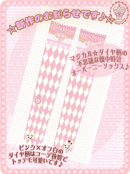 ☆マジカル☆ダイヤ柄の不思議な懐中時計タイツ☆ のオーバーニーソックスのピンクが出来上がりそうです 今回は秘密のダイヤ柄シリーズが進行中ですのでお楽しみに ブログランキングに参加しています。クリックして応援よろしくお願いします。 にほんブログ村 FC2 Blog Ranking JUGEMテーマ:ロリィタ