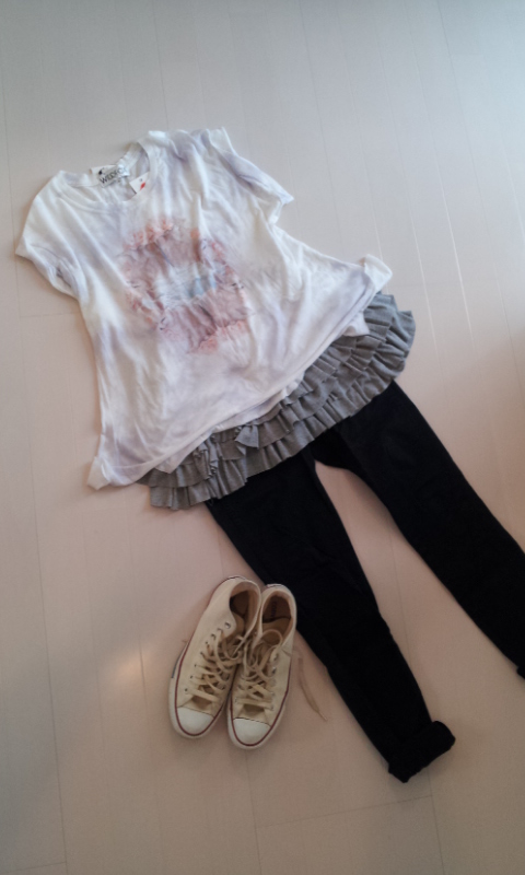 JUGEMテーマ:オシャレ大好き コンバースコーデ!!! とことんスポーティにちょっと女子をプラスして♡ WILDFOXのTeeと共に↓ ・Tシャツ WILDFOX SALE 16800円→5040円 お気に入り! ・灰色→実はスカート! それをへプラム風に仕上げた リミットレス ラグジュアリー 9000円位(4年前位に購入) ・パンツ ユニクロ 1990円 着てみました!!!↓ ボトムスは明るい色に変更してみました! 夏なファッションでした〜(*_*) やっぱりふとももあたり...