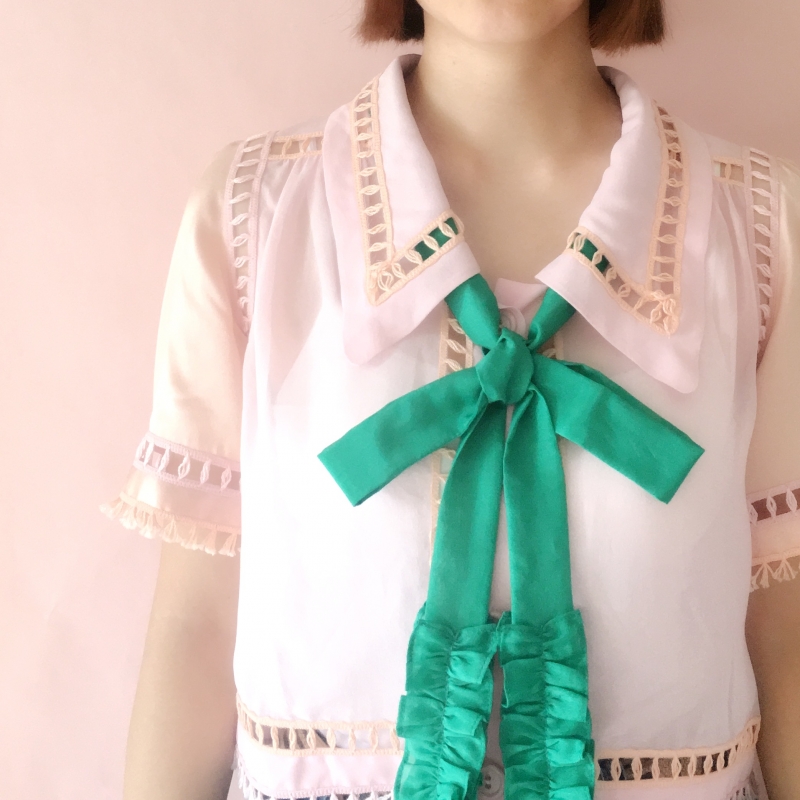JUGEMテーマ:気になるファッション こんばんは縫ってはほどきの一日でしたデザイナー大石です なにか新しいものを作る時に、デザインを決めそれにあった素材を探す場合と 素材を見てからそれにあったデザインを考える場合とどちらもあります どちらにしても元からある引き出しの中からこことあそこを開けて組み合わせて 形にしていく作業なので大した差はないように思います 今週の新作はつけ襟ではなくボウタイ(リボンタイ) 生地屋さんで布を物色していて、色がとても気に入ったことと適...