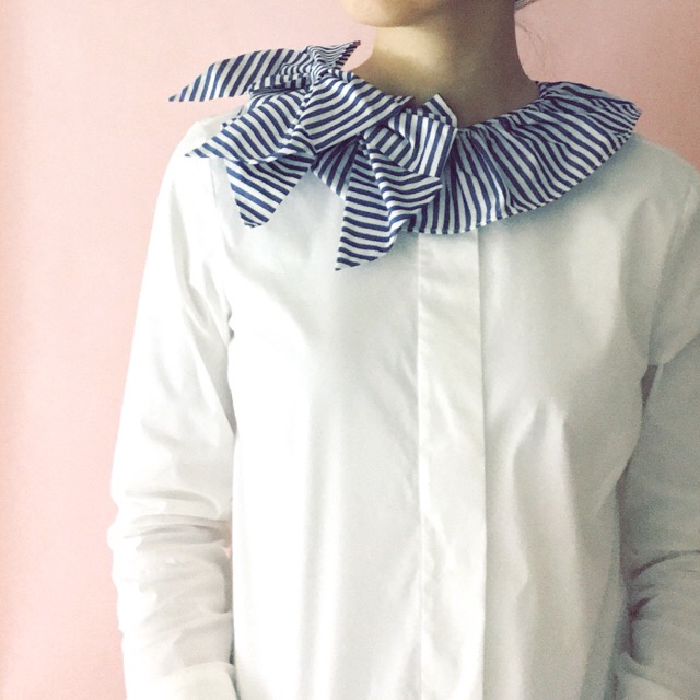 JUGEMテーマ:気になるファッション 今日はとってもあたたかでした まんをじしてルマンドアイスを食べたデザイナー大石です 春夏に合うブルー 秋冬に合うブルー 同じブルーでも季節によって選ばれるブルーが違うように思います 素材によっても変わりますがダンガリーのブルーは圧倒的に春夏に人気です さらっとした感触のコットンと涼しげなブルー ギャザーがたっぷり寄ったつけ襟《SISTER》 生成りのつけ襟《RUFFLE RUFFLE》の妹分として登場したので《S...
