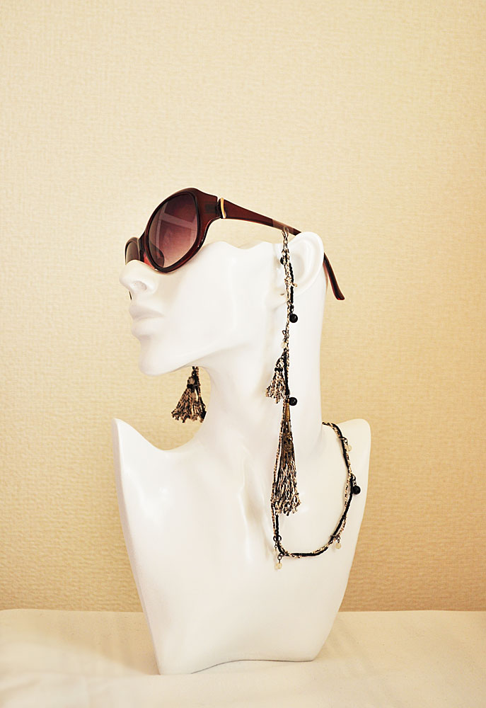 FC2ブログ【BEADS SPANGLES】より移行中 ゆれるタッセルがアクセントのグラスコード 6種類。 シリコンのめがね留めをとればネックレスにもなるんですよ。 私は遠視で、 遠くは見えるけど近くのものが見えずらい。近視の真逆。 だから細かい作業をするときには眼鏡を使います。 あと、ミシンを使う時にも。 うっかりまち針の上を縫って、針が折れることもしばしば。 針が飛んで目に入る...