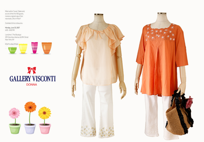 JUGEMテーマ:オシャレ★大好き JUGEMテーマ:本日のおすすめ GALLERY VISCONTI/ギャラリービスコンティ ★ マリーミー・ショップ へ 夏のオレンジ、ビタミンカラー 元気カラーの代名詞のように、 明るく爽やかにコーディして頂けます。 ★ チェック柄ブラウス ★ チュニック ★ パンツ(黄色花刺しゅう) ★ パンツ(白花刺しゅう)