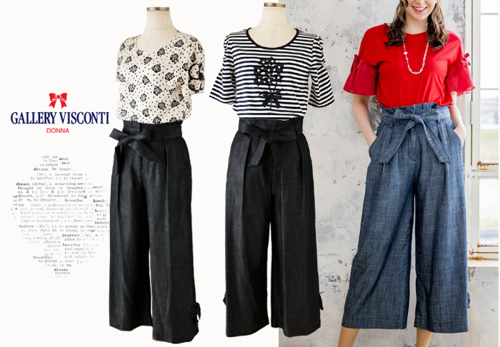 JUGEMテーマ:オシャレ★大好き JUGEMテーマ:本日のおすすめ GALLERY VISCONTI/ギャラリービスコンティ ★ マリーミー・ショップ へ デニム風合いのテンセル・麻混素材が涼しく、 ウエストリボンが可愛いアクセントに、 エレガントラインのお洒落着です。 ★ デニムパンツ ★ ボーダー・カットソー ★ 花柄・カットソー