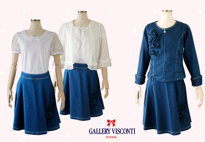 JUGEMテーマ:オシャレ★大好き JUGEMテーマ:本日のおすすめ GALLERY VISCONTI/ギャラリービスコンティ ★ マリーミー・ショップ へ ジョグデニム素材のセットアップです。 スカートにカットソーやレースカーディガンなど、 普段のお洒落着にご活用頂けます。 デニムにリアル・リボンテープが可愛いデザインです。 ★ デニム・ジャケット ★ デニム・スカート ★ レース・ジャケット ★ カットソー
