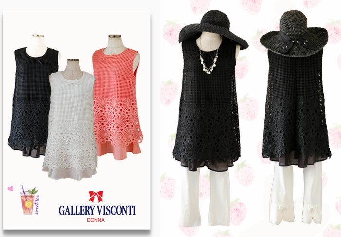 JUGEMテーマ:オシャレ★大好き JUGEMテーマ:本日のおすすめ GALLERY VISCONTI/ギャラリービスコンティ ★ マリーミー・ショップ へ モノトーンカラーのコーディです。 幅の広い帽子で日焼け対策と リボン・パール飾りがお洒落デザインです。 ★ ノースリーブ・チュニック ★ パンツ ★ 帽子