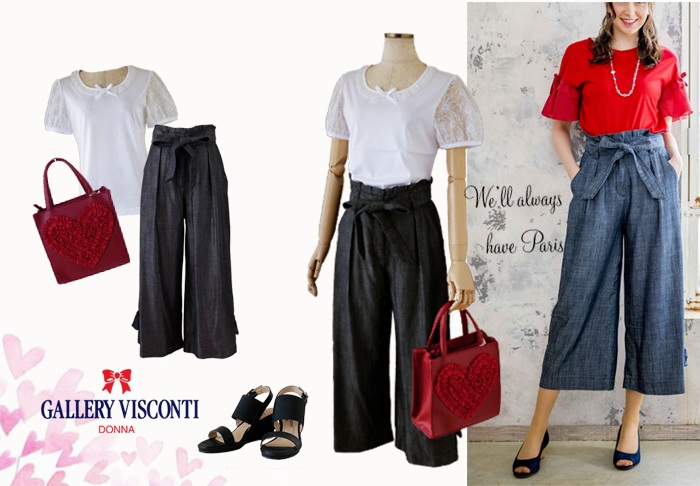 JUGEMテーマ:オシャレ★大好き JUGEMテーマ:本日のおすすめ GALLERY VISCONTI/ギャラリービスコンティ ★ マリーミー・ショップ へ デニムに赤を取り入れて、 ビビットに大人可愛いいコーディです。 ★ 白・カットソー ★ ガウチョ・パンツ ★ レッド・Bag ★ 黒・サンダル