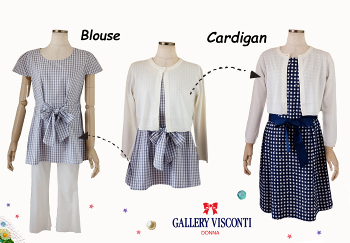JUGEMテーマ:オシャレ★大好き JUGEMテーマ:本日のおすすめ GALLERY VISCONTI/ギャラリービスコンティ ★ マリーミー・ショップ へ セットになったブラウスとカーディガン 単品でご活用頂けるアンサンブル商品です。 ★ アンサンブル ★ ワンピース ★ パンツ