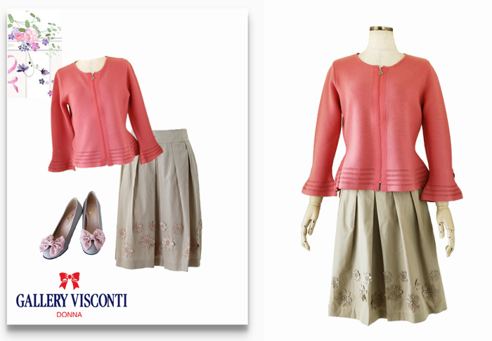 JUGEMテーマ:オシャレ★大好き JUGEMテーマ:本日のおすすめ GALLERY VISCONTI/ギャラリービスコンティ ★ マリーミー・ショップ へ ★ エレガントラインのニットジャケットと、 花刺しゅう飾りのスカートを 春らしいカラーでコーディです。 ★ ニットジャケット ★ スカート ★ 靴
