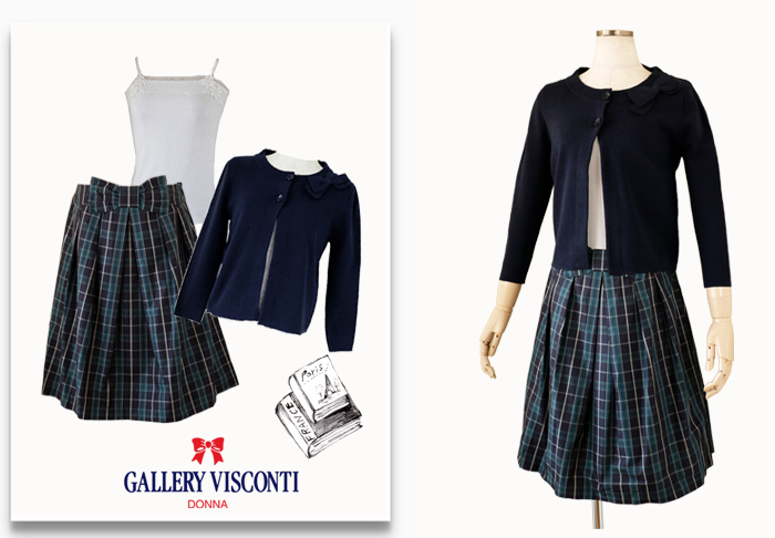 JUGEMテーマ:オシャレ★大好き JUGEMテーマ:本日のおすすめ GALLERY VISCONTI/ギャラリービスコンティ ★ マリーミー・ショップ へ ★ ビスコンティ定番のリボン飾りでコーディした、 大人可愛いカレッジ風スタイルです。 ★ カーディガン ★ スカート ★ インナー