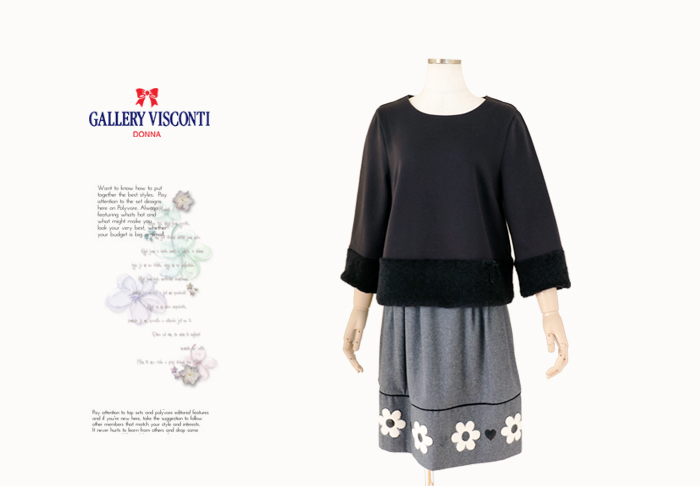 JUGEMテーマ:オシャレ★大好き JUGEMテーマ:本日のおすすめ GALLERY VISCONTI/ギャラリービスコンティ ★ マリーミー・ショップ へ ★ ストレッチ性あるポンチ素材と 凹凸感あるウール素材の切り替えアウターです。 すっぽりとかぶるデザインが楽な着心地です。 花アップリケ・スカートと可愛くコーディは如何でしょうか? ★ アウター ★ スカート