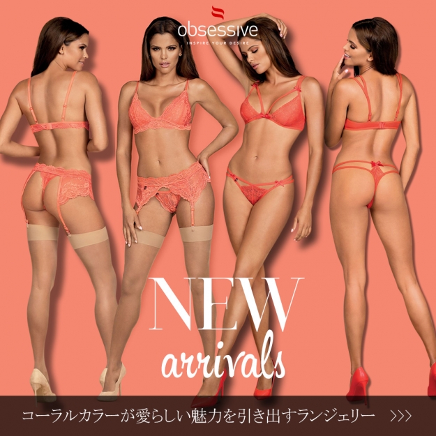 オブセッシブより新作ランジェリーが登場! 心ときめくコーラルカラーが印象的な限定アイテム。 コーラルレッドのカラーが素肌を輝かせるソフトカップブラ&タンガの2点セットと 桃色珊瑚のように美しいコーラルピンクのブラレット&ガーターベルト&タンガの3点セットの2アイテム! パートナーの心をつかむこと間違いなしのランジェリーアイテムをぜひお試しください。 [obsessive] 810 & Intensa set >>> JUGEMテーマ:ランジェリー &n...