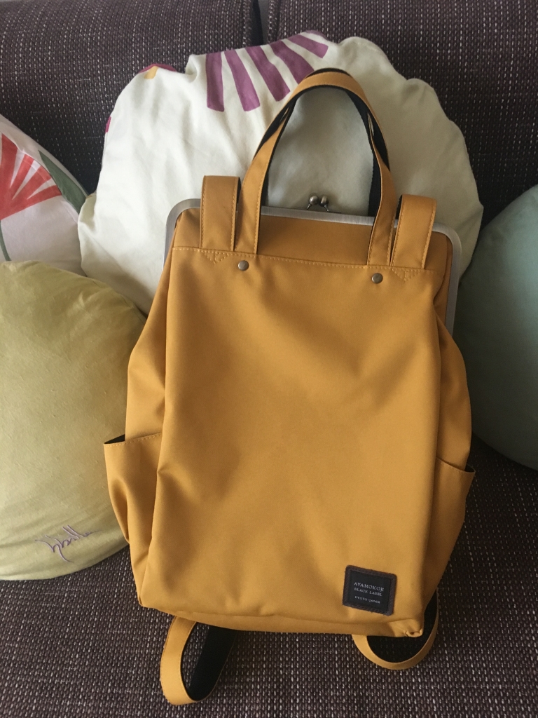 出勤で歩く距離が長いのと、お弁当やお茶を入れたタンブラーなどを持っていくのでついついリュックを背負う機会が増えます。 もともと自転車に良く乗るのでリュック派でもありました。 いくつか持っている中で、老若男女いろんな人に褒められるのはこの あやの小路さんのがま口リュックです。 マスタードイエローで人の目を惹くのと、がま口がかわいいとよく言われます。 ついパチン♪と開けたくなるとも。 背負っている時は肩ひもで閉まっているので開けられないんですけどね...
