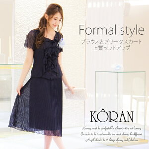 JUGEMテーマ:パーティ JUGEMテーマ:オシャレ★大好き 30代からの上品な大人のお呼ばれスタイル♪ https://item.rakuten.co.jp/koran/ko32-bs001/ 色:ネイビー サイズ:9・11号 価格:21,384円 華やぐシーンを上品に飾る大人のフォーマルスタイルとしてオススメのブラウススーツ 前フリルのブラウスや、丈長めの揺れ感の美しいプリーツスカートはそれぞれ単品でも着回しできるアイテム うっすら透け感のある華やぐ素材にラメスラブを使いフォーマル感をぐっと際立たせます