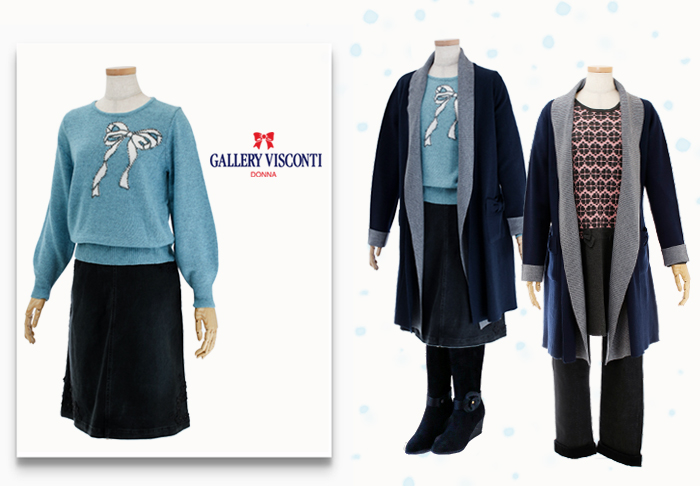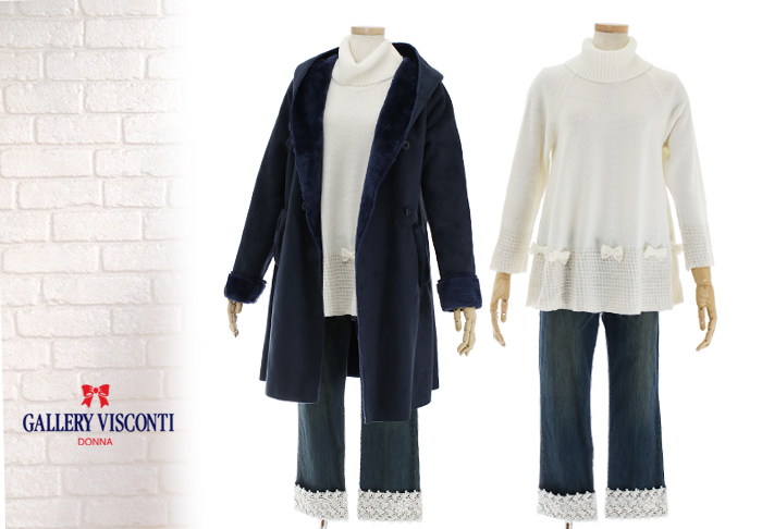 JUGEMテーマ:オシャレ★大好き GALLERY VISCONTI/ギャラリービスコンティ ★ マリーミー・ショップ ★ リボンビーズ飾りのセーター ★ 2カラー配色のニットコート ★ チュニックニット