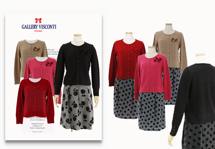 JUGEMテーマ:オシャレ★大好き GALLERY VISCONTI/ギャラリービスコンティ ★ マリーミー・ショップ ★ 別珍リボンブローチ付き・カーディガン ★ アップル柄フロッキー・スカート