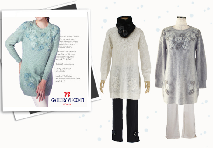 JUGEMテーマ:オシャレ★大好き GALLERY VISCONTI/ギャラリービスコンティ ★ マリーミー・ショップ ふんわり感あるモヘヤ混合に 花刺しゅうがお洒落なチュニック丈セーターです。 ★ セーター ★ 紺パンツ ★ オフホワイト・パンツ