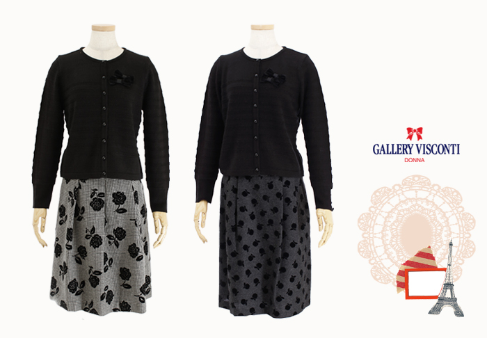 JUGEMテーマ:オシャレ★大好き GALLERY VISCONTI/ギャラリービスコンティ ★ マリーミー・ショップ ジャケットのようなラインのカーディガンです。 柔らかく楽な着心地でご活用頂けます。 ★ カーディガン ★ 花柄・スカート ★ アップル柄・スカート