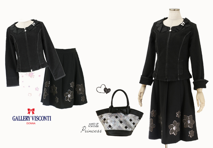 JUGEMテーマ:オシャレ★大好き GALLERY VISCONTI/ギャラリービスコンティ ★ マリーミー・ショップ へ ブラックのシックなカラーに ビジュー、スパンコール、グログランテープのデザイン、 大人華やかなおしゃれ着です。 ★ デニムジャケット ★ スカート ★ バッグ