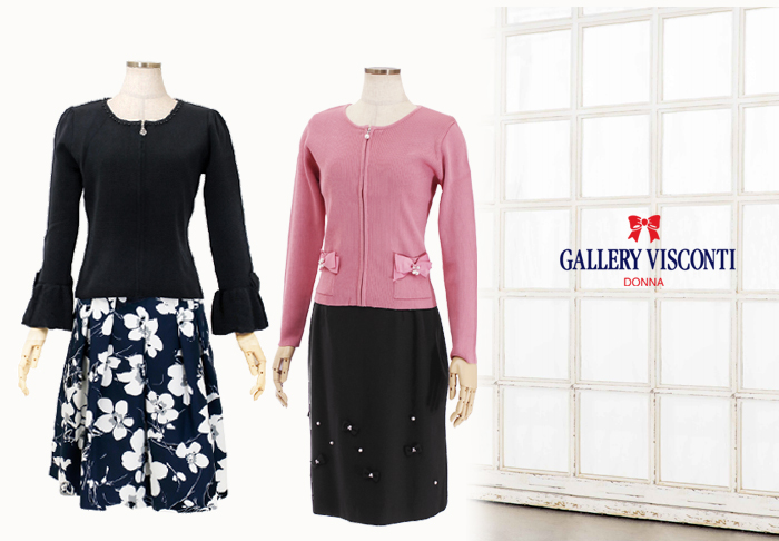 JUGEMテーマ:オシャレ★大好き GALLERY VISCONTI/ギャラリービスコンティ ★ マリーミー・ショップ へ ニットジャケット&スカート 柔らかさと伸縮性ある楽な着心地のニット素材、 きちんと感と可愛さあるジャケットです。 ★ 黒・ニットジャケット ★ 花柄・スカート ★ ピンク・ニットジャケット ★ リボン飾り・スカート