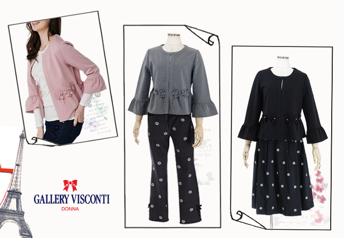JUGEMテーマ:オシャレ★大好き GALLERY VISCONTI/ギャラリービスコンティ ★ マリーミー・ショップ へ 柔らかくストレッチあるポンチ素材、 花モチーフ飾りが可愛いデザインです。 ★ ジャケット ★ スカート ★ パンツ