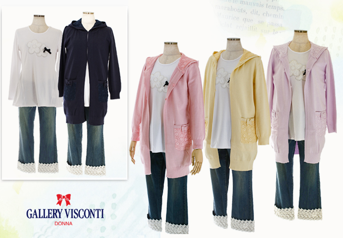 JUGEMテーマ:オシャレ★大好き GALLERY VISCONTI/ギャラリービスコンティ ★ マリーミー・ショップ へ パーカーのような着心地のロングカーディガンです。 綿混合で肌触りがよく、程よいフィット感、 レース合わせあがお洒落なデザインです。 ★ ロングカーディガン ★ デニムパンツ ★ カットソー