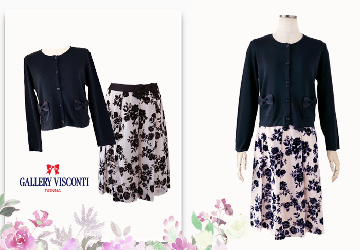 JUGEMテーマ:オシャレ★大好き GALLERY VISCONTI/ギャラリービスコンティ ★ マリーミー・ショップ へ ジャケット&ワンピースのカラーコーディ、 どちらも柔らかく着心地のよいニット素材です。 華やかさある花柄ワンピースにプラスワン、 セットアップのようにご活用頂けます。 ★ ワンピース ★ ニット・ジャケット