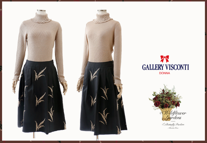 JUGEMテーマ:オシャレ★大好き GALLERY VISCONTI/ギャラリービスコンティ ★ マリーミー・ショップ へ ビスコンティから秋商品入荷しました。 リーフモチーフの刺しゅうスカート、 シックに華やかに大人のお洒落着です。 ★ スカート