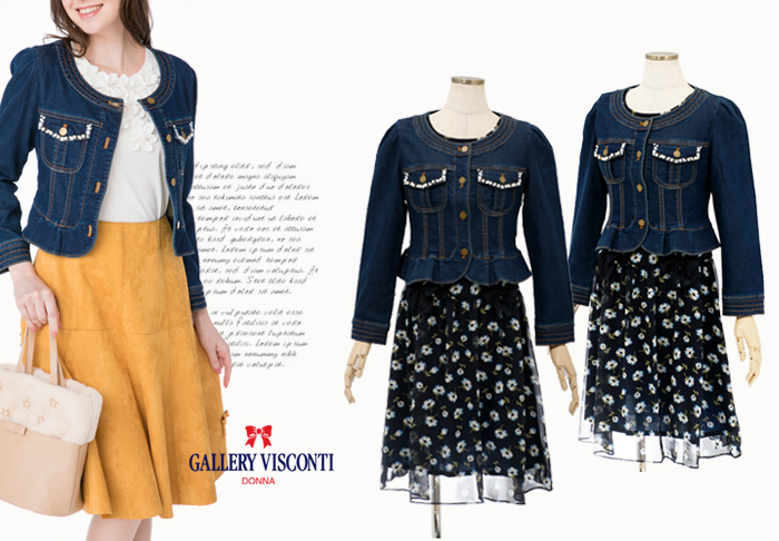 JUGEMテーマ:オシャレ★大好き GALLERY VISCONTI/ギャラリービスコンティ ★ マリーミー・ショップ へ クラシカルなラインのデニムJK パールとビジュー飾りで、 アクセサリーのように華やかなデザインです。 ★ デニムJK ★ ワンピース