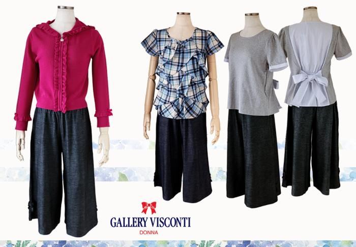 JUGEMテーマ:オシャレ★大好き GALLERY VISCONTI/ギャラリービスコンティ ★ マリーミー・ショップ へ カットソーのようにストレッチと柔らかい素材のニットデニム。 カジュアル、コーディしやすいガウチョパンツスタイルです。 ★ ガウチョパンツ ★ メッシュ・ジップアップパーカー ★ テアード・カットソー ★ バッグリボン・カットソー