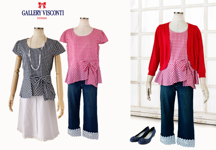 JUGEMテーマ:オシャレ★大好き GALLERY VISCONTI/ギャラリービスコンティ ★ マリーミー・ショップ へ いつの時代にも人気のギンガムチャック、 大きめリボンが可愛いいデザインブラウスです。 ボレロニットは紫外線、クラー対策にも便利アイテムです。 ★ アンサンブル ★ デニム・パンツ ★ スカート・ホワイト