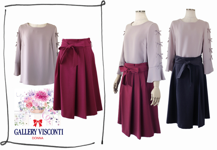 JUGEMテーマ:本日のおすすめ JUGEMテーマ:オシャレ★大好き GALLERY VISCONTI/ギャラリービスコンティ ★ マリーミー・ショップ へ ★ リボンアクセントのトップス&スカート トップスの袖についたリボンが華やかに、 スカートのワインは可愛く、 濃いグレーは大人っぽくエレガントです。 ★ トップス ★ スカート