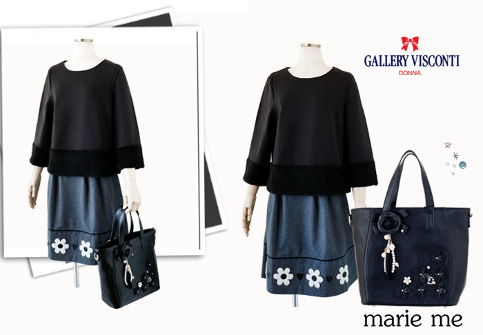 JUGEMテーマ:本日のおすすめ JUGEMテーマ:オシャレ★大好き GALLERY VISCONTI/ギャラリービスコンティ ★ マリーミー・ショップ へ ★ アウターは体系をカバーしたゆったりAライン、 スカートのモチーフが可愛さ引き立ちます。 黒のバッグにパール飾りのお洒落感ある、 シックな色合いの中、オリジナル感あるコーディです。 ★ アウター ★ スカート ★ バッグ