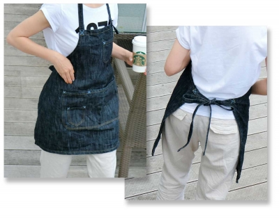 デニムのエプロンを作りました。 早々にUPします。 長く愛用出来るように 本物にこだわって作りました。 インディゴ染 15オンスデニム Made in Japan 日本の縫製工場の卓越した技術はまだ健在です。 先細りであることがとても残念です。 そういう逸品です。 お洒落なカフェを経営するご夫...