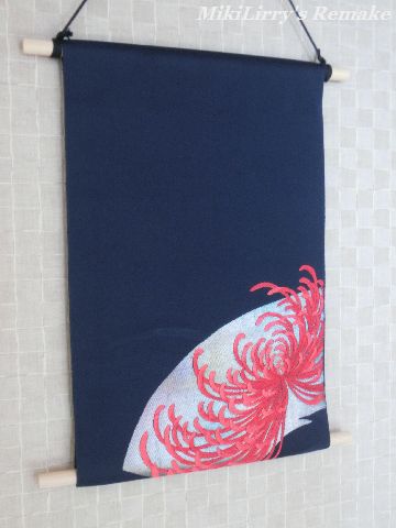 JUGEMテーマ:着物リメイク/古布リフォーム/裂き織り こんにちは MikiLirryです♪ 昨日から暑い日々が続きますね…(;´Д`) 暑い日には涼しい雰囲気のインテリアを飾って 少しでも涼しくしましょ〜 涼しい雰囲気のタペストリーをおつくりしてみました。 花田色(紺色)に夏の彼岸花がはいっております。 銀色が華やかで爽やかな感じがポイントに♪ 是非ともお店まで、お気軽にお越しください〜♪ http://smikirirry.net