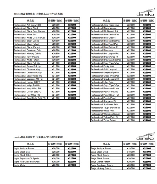 2015年3月1日より、定番商品の価格を下記のとおり改定いたします。価格改定リストダウンロード