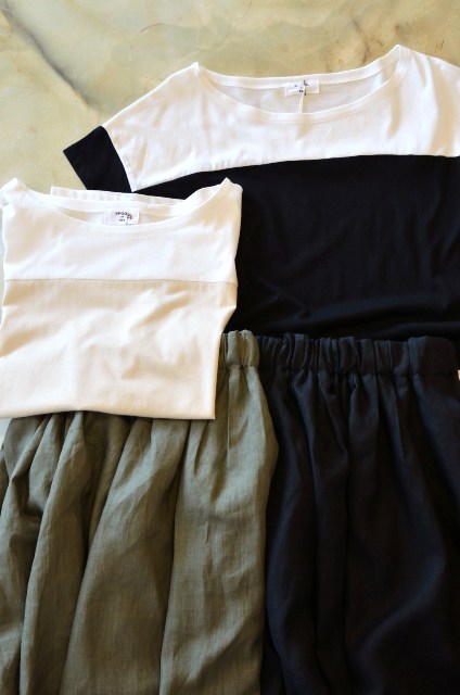 定番のフレンチリネンで、これまた定番のタック入りギャザースカート オールシーズン使えるリネンのギャザースカートは、オーダーでもとても人気のアイテムです。 カットソーはフレンチスリーブで、大きめのボーダー 後ろが少し丈が長いのが嬉しいです。 ボックスタイプなのでゆったりとして着心地も楽チンですよ。 SPOOLカットソー ブラック・ベージュの2色 ¥4,800 (+税) ギャザースカートは、...