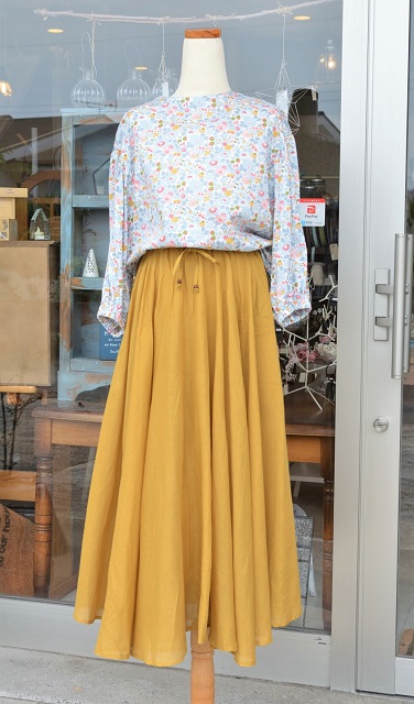 夏に涼しげなコットンボイルのサーキュラースカート 生地は薄いですが2重仕立てで軽くてふわふわ♪ 落ち感があってとてもきれいです。 ウエストはゴム&紐で調節できるタイプ ポケットもあるので便利ですよ。 綿100% で汗をかいてもサラッとしています。 お洗濯も気にせずできるのが嬉しいですね♪ サイズ Free 色 ネイビー・マスタード...