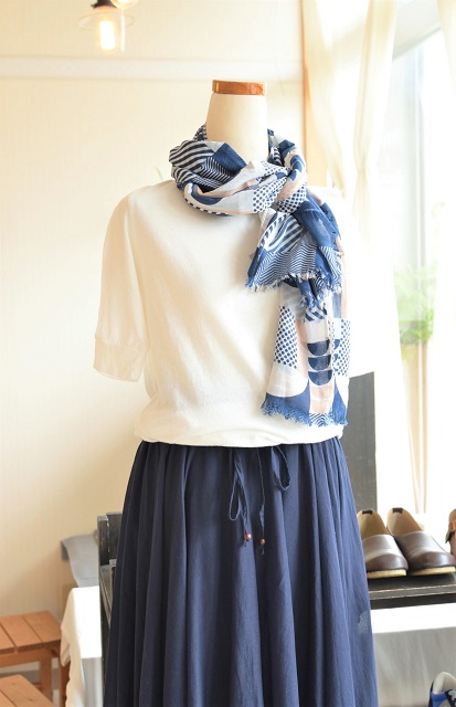 夏向けのさわやかなストールが届きました。 素朴な色合いのプリントは、職人がパーツごとに木版を彫り、 色別に版押しをして仕上げたブロックプリントという技法です。 インド綿の柔らかな素材が心地よいです。 色はネイビーとイエローグレー ふわふわと柔らかな風合いが特徴です。 サイズ:W110×L180cm 綿...