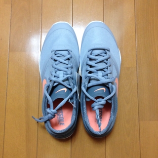 早速到着したスニーカー☆ 毎回発送が早いです^^ マガシーク カラーは前記事の画像が近いと思います 薄いグレーにパステル調オレンジのナイキマーク 届いた状態で履こうとしたら、入れづらい 足幅が広い私、紐を緩めて、相当ぴったり こういうタイプなのかな、かも、 まだ外履きしてないのでなんとも言えませんね^^; スマートな印象* JUGEMテーマ:女子のためのファッションクローゼット♪