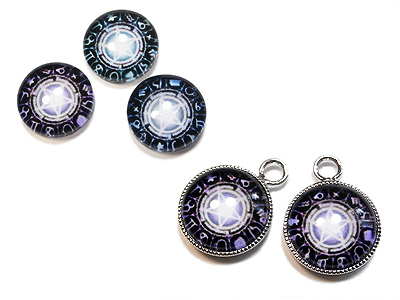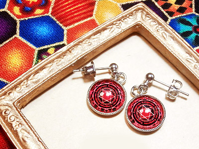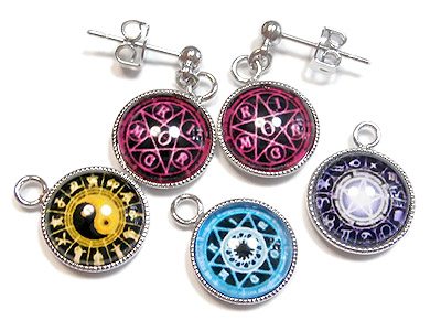 JUGEMテーマ:プチプラ★ファッション 魔法書シリーズのパーツにするために おはじき型のオリジナルストーンを作ってみたのがきっかけで 新しい作品シリーズができそうです♪ 写真のような魔法陣柄のガラスストーンを目下量産中でして、 こちらをピアス(ノンホールピアスに変更できます)にお仕立てして 近日店頭に並べたいと思っています。 魔法陣を描くのは面白いのですが 直径1センチの小さなキャンパスなので、 細かく書き込みすると印刷でつぶれてしまうため、 デ...