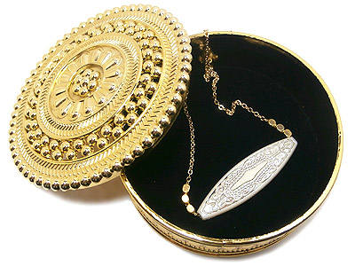 JUGEMテーマ:プチプラ★ファッション 「プチギフト」カテゴリーに新作を2点アップ致しました! こちらはちょっとした贈り物用におすすめしております、 ラッピング付きプチプラアクセサリーのシリーズですが、 気づけばほぼ完売状態になっていて(すみません)今日は久々の追加になりました。 おそろいのデザインのネックレスとピアス(ばら売り)です♪ (写真の金色のケースはセットに含まれません) ヨーロッパ風のもようが描かれた、とっても綺麗なビー...