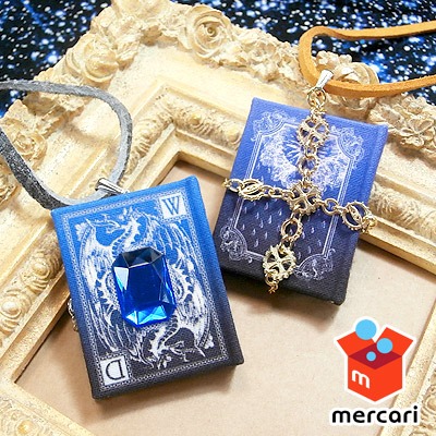 JUGEMテーマ:プチプラ★ファッション 今週はメルカリ支店に、7品のサービス品をアップ致しました。 そのうち、おすすめの2品をご紹介したいと思います! 写真左は、魔法書ペンダント「懸賞金つき竜の手配書」のサンプルセール品です。 色違いで作ってみた物で、裏表紙にほんの少し色ハゲができてしまった B級品ではありますが、青の綺麗な一品になりました♪ ネックレス紐は、通常使用しているスエード(レザー風の布)の紐ではなく、 蛇柄がプリントされたレザー紐で、竜のイメー...