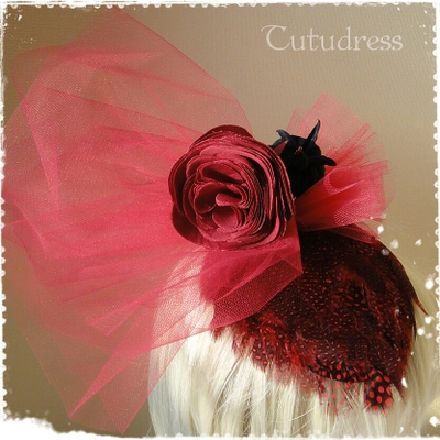 羽根が敷きつめられたボンネット。 ベリーカラーのオールドローズには、ブローチピンがついておりますので、取り外し可能です。 チュチュドレスにもお使いいただけます。 当店人気の毒いちごは絹、今回はベリーカラーのガラスビーズ。 長い方のチュールで、ボンネットにいろいろな表情が出せます [ベリー&ローズ 羽根のボンネット Berry & Rose Bonnet with feathers] はこちらから。 http://tutudress.shop-pro.jp/?pid=66423690 ベリーカラー [ラヴベリー Loveberry] チュチュドレスはこちらから。 http://tut...